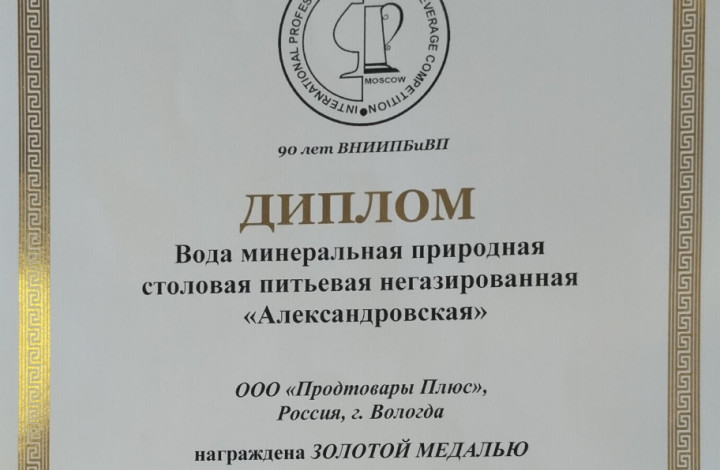 Вода «Александровская» завоевала золото на XXVII Международном конкурсе пивоваренной и безалкогольной продукции